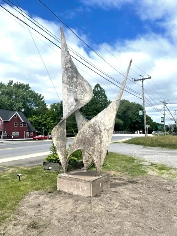 Here’s a video detailing the move, which required a crane and a flatbed truck to bring the sculpture to downtown Ellenville, where it now stands outside the village’s historic former train station.